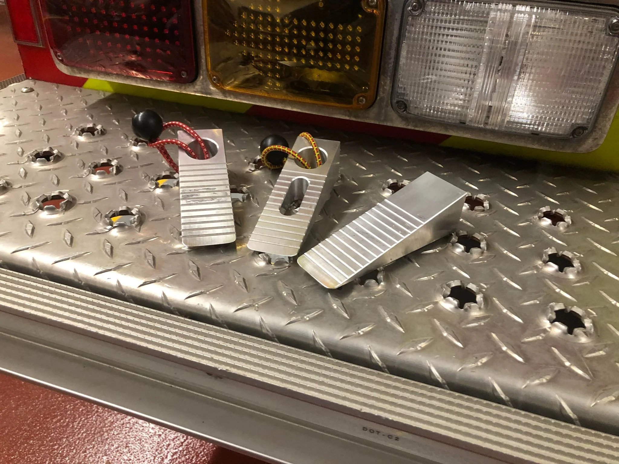 Multiple styles of forcible entry wedges made from 6061 aluminum for firefighters and first responders.